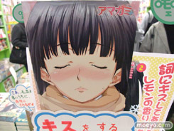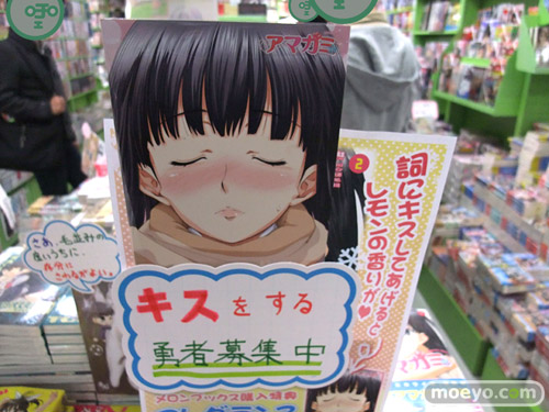 東雲太郎氏コミック「アマガミ precious diary 2巻」が発売!メロンブックスでは、特典としてキス顔のフレグランスイラストカードが付属します。そのサンプルを掲示していて、POPでは「キスをする勇者募集中」と書かれていました!
