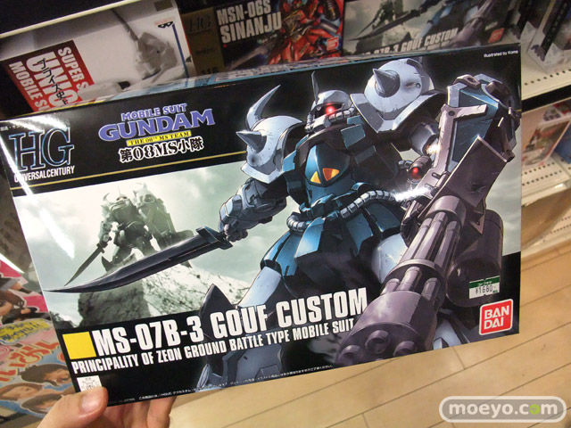 バンダイ「HGUC MS-07B3 グフカスタム」が発売!『シールドは複雑な分割を再現!手首パーツも豊富に付属』というもので、ホビーシティのPOPには『漢のマストアイテム』「モビルスーツの性能を生かせぬまま死んでゆけッ!!』等。