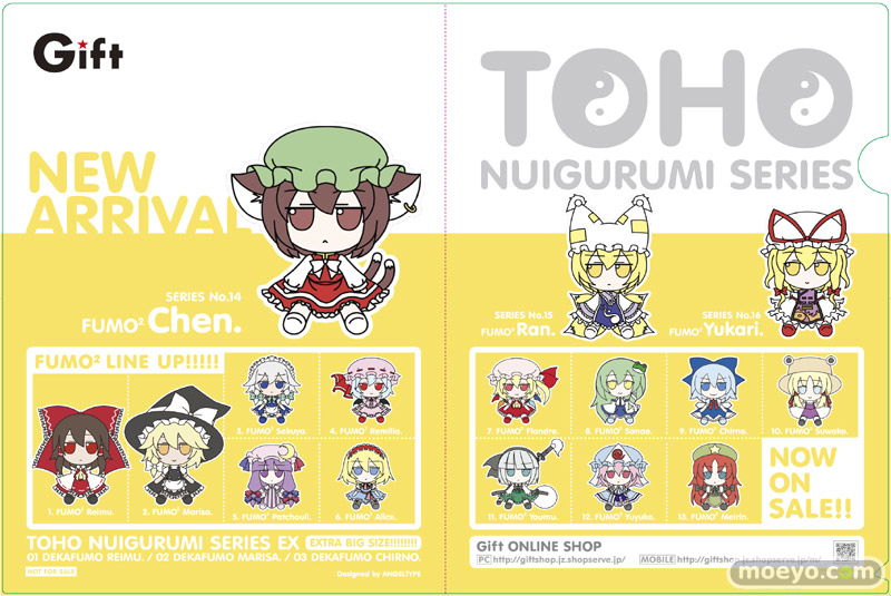 ■ 商品名:「東方ぬいぐるみシリーズ 15【八雲藍】ふもふもらん。」 ■ 出典元:東方Project ■ 発売元:Gift ■ 仕様:可動式ぬいぐるみ ■ サイズ:ノンスケール 全高約200mm ■ 価格:イベント頒布 税込2,800円/通常 税込2,940円 ■ 先行販売:2010年11月28日(第2回Giftぬいぐるみふぇすてぃばる) ■ 一般発売:2011年春 |