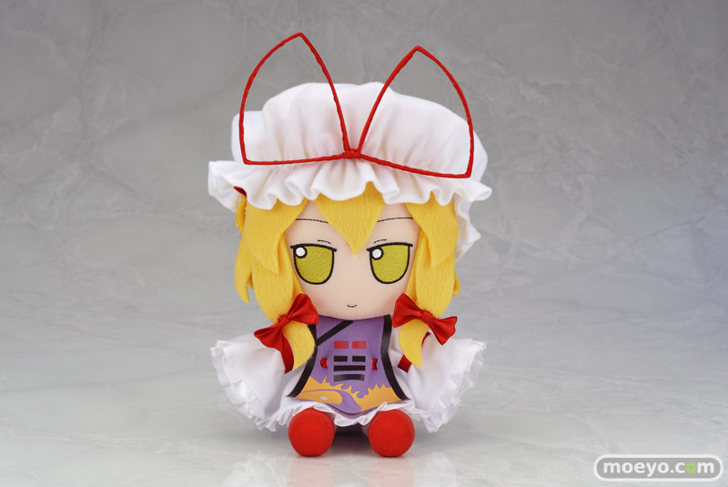 東方ぬいぐるみシリーズ第16弾には、境界を操るすきま妖怪、神出鬼没な【八雲紫】が登場です!!ボリューミーな長い髪の毛とキュートなリボンが素敵な紫を可愛らしく表現いたしました。帽子は取り外し可能なので髪の毛を帽子の中に収納できちゃいます。八雲一家を全員集合させて可愛がってくださいね☆