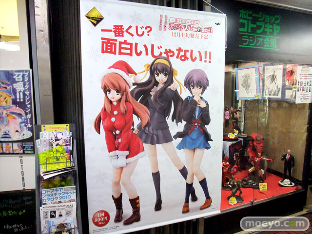 以前告知ポスターの掲示をお伝えした、バンプレスト「一番くじプレミアム 涼宮ハルヒの籤引」ですが、11月19日には、恒例の巨大タペストリーの掲示も、コトブキヤラジオ会館で開始!今回も抽選で合計11名に当たるようです!