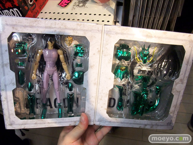 聖闘士聖衣神話シリーズにアニメオリジナル設定版のドラゴン紫龍が登場!劇中でも十二宮編のラストまで着用した聖衣は今までに発売された黄金聖闘士達とも対決した聖衣と同様。パーツの主要部分にはダイキャストを使用。アーマーはオブジェ形態に組み換えることも可能。マスクを外した状態も再現可能。目を閉じた表情も付属。
