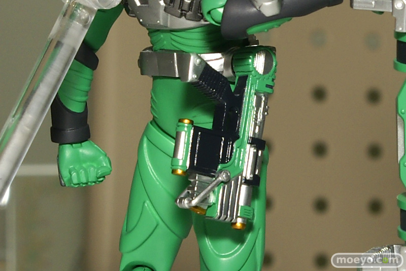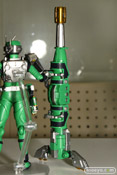 ● 召喚銃はもちろん、シ ュートベントで発動する武器類も付属。重火力メインのライダーらしい迫力のあるポージングが再現可能。