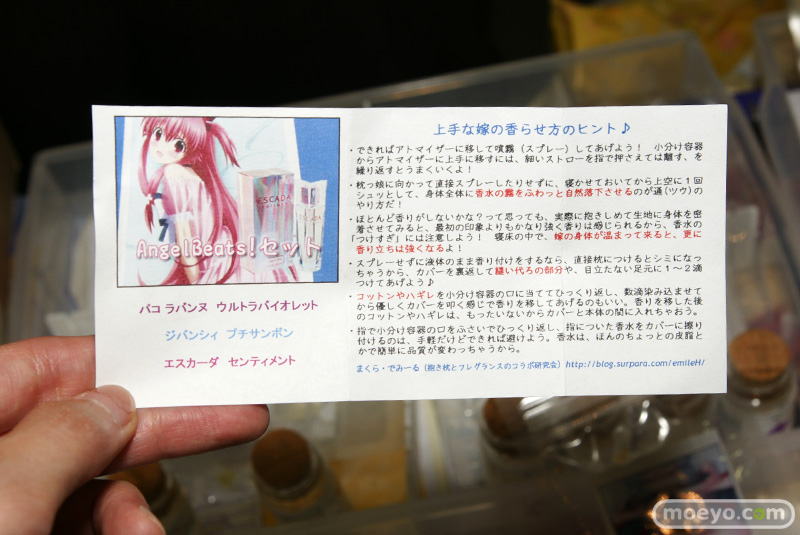 「枕っ娘をいかに愛していても、ドールのように服をコーディネートして、作って着せてあげることはもちろん、望遠鏡で金星を見せてあげることも出来ない。せめて彼女にお似合いの、たとえばブーバの香水をプレゼントしてあげたいって思うんです。」