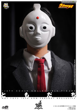 浦沢直樹原作による『20世紀少年』は、1999年から2006年まで小学館刊行の「ビッグコミックスピリッツ」に連載された本格科学冒険漫画。2008 年には映画化され3部作品として公開となった、日本コミック史上に名を残す不朽の名作である。「ともだち」は、よげんの書をもとに、血の大晦日と呼ばれた細菌兵器と巨大ロボットを使ったテロ事件を引き起こした影の黒幕であった。宗教団体の教祖からはじまり、政党の党首、そして世界大統領にまでのぼりつめ、地球征服を企む「ともだち」を、なんと浦沢直樹先生自らによる監修のもと立体化が実現。