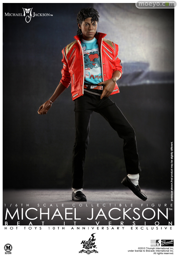 ■ 商品名:「マイコン マイケル・ジャクソン(今夜はビート・イット版)」 ■ 発売元:ホットトイズ ■ 仕様:塗装済み可動フィギュア ■ サイズ:1/6スケール 全高約300mm ■ 原型制作:ユリ氏/チーフペインター:JC・ホン氏 ■ 付属品:差し替え用ハンドパーツ(2セット) ■ 価格:税込18,000円 ■ 生産情報:全世界限定4,000体(国内イベント限定2,000体/香港イベント限定2,000体) ■ 流通方法:ホットトイズ10周年イベント限定 |