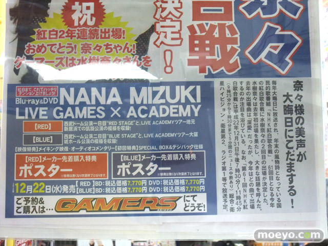 12月22日には、NANA MIZUKI LIVE GAMES×ACADEMY-BLUE-「Blu-ray版」(AA)(AM)(BA)「DVD版」(AA)(AM)(BA)と、NANA MIZUKI LIVE GAMES×ACADEMY-RED-の「Blu-ray版」(AA)(AM)(BA)「DVD版」(AA)(AM)(BA)も発売予定となっています!