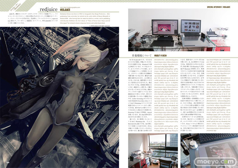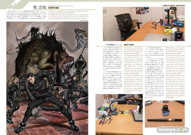 また特別インタビューとして、2011年には実写映画も公開予定の漫画「GANTZ」原作者の奥浩哉先生や今年アニメ化され話題となっている「薄桜鬼 ~新選組奇譚~」イラスト担当のカズキヨネ先生など、国内有名漫画家やイラストレーターのインタビューも掲載。OTACOOL3で好評だった仕事部屋写真も含め、制作環境、使用機器やマシン、よく使う資料、好きな時代設定・人物、普段の生活スタイルなどファンならずとも気になる内容を盛り込んだインタビューページとなっています。