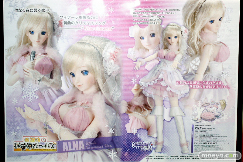 ■ 商品名:「Dollfie Dream Dynamite 放課後秋葉原ガールズ アルナ White Christmas Ver.」 ■ 仕様: 瞳:アニメティックアイズ「アルナWhite Christmas Ver.」オリジナル光彩・メタリック・20mm ウィッグ:「アルナWhite Christmas Ver.」新型オリジナルスタイル、DDサイズ仕様 ボディ:DDダイナマイトボディ・ホワイト肌、寄せ胸採用 ■ セット内容:ドール本体、ウィッグ、ケープ、ワンピース、リボンベルト、ヘッドドレス、チョーカー、アームカバー、ファーカフス、パニエ、ショーツ、サイハイブーツ ■ 原型制作:北原康介氏(造形村) ■ ドレス製作:ボークスドール企画室 ■ 価格:税込52,500円 ■ 発売: 2010年12月12日(ドールズ・パーティー24 ) 2010年12月25日、26日(ドールズ・パーティー24 アフターイベント) |