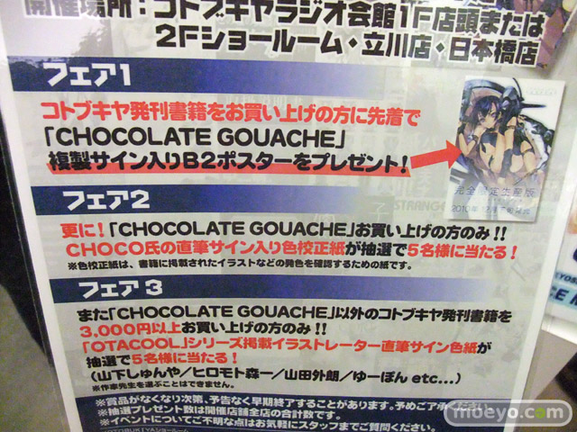 2010年12月22日~12月31日の期間、コトブキヤショップで開催予定の「コトブキヤBOOKフェア」の告知を見せて頂きました!12月下旬発売予定の「CHOCOLATE GOUACHE」複製サイン入りB2ポスターをプレゼント!というものです!