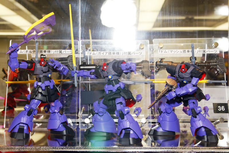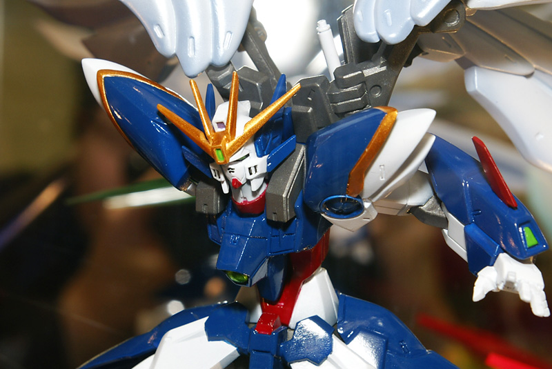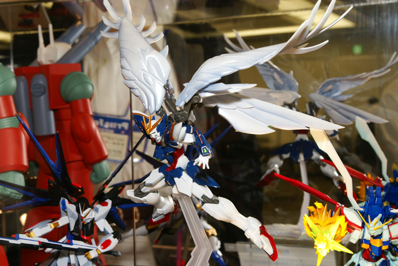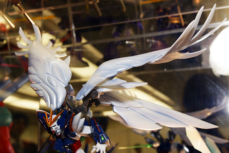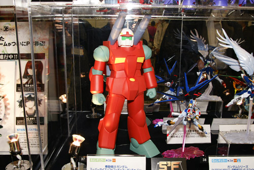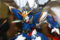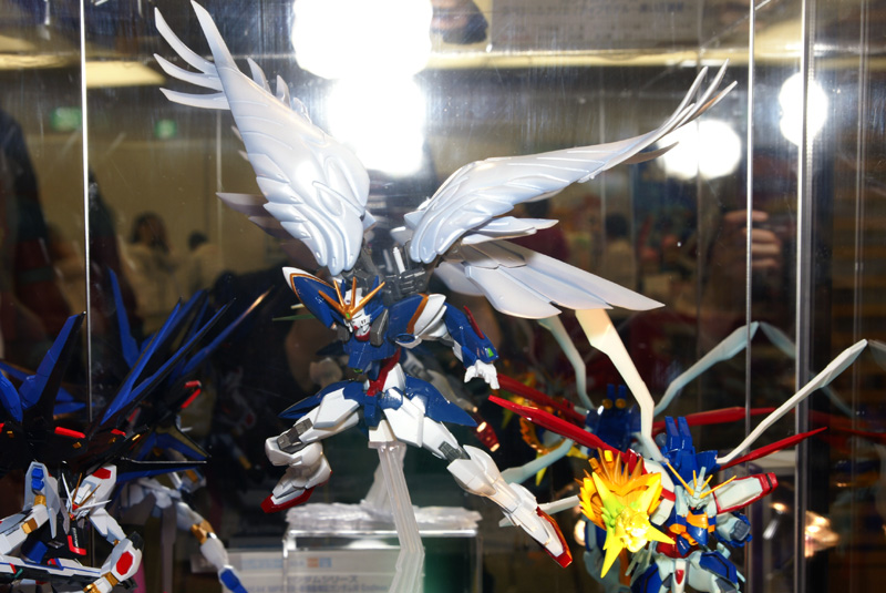 「第22回プライズフェア 2011.SPRING」のバンプレストプライズブースにて展示されていた、ガンダムもののプライズのサンプルです。34センチのスーパーサイズなガンキャノンに”黒い三連星”等。画像は「ウィングガンダム0カスタム」。
