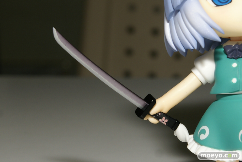 愛用する長刀「楼観剣」と短刀「白楼剣」の二振りの刀はもちろん、半人半霊の妖夢がまとう幽霊も再現しました。