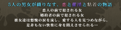 シナリオ・原画は「媚肉の香り~ネトリネトラレヤリヤラレ~」と同じく、土天冥海、市川小紗のタッグ。