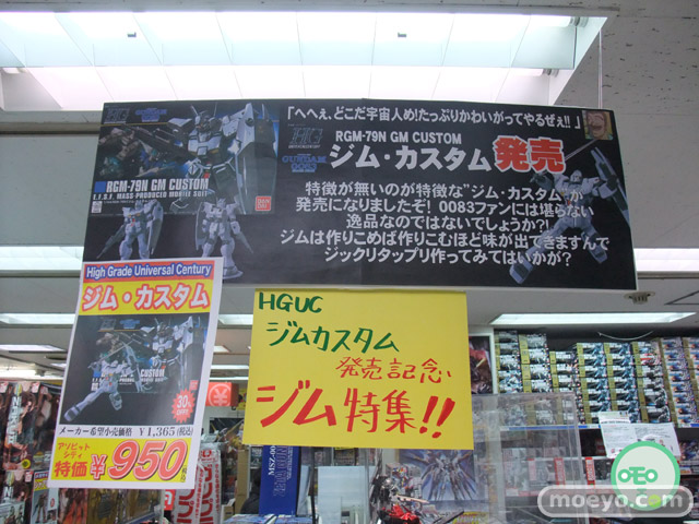 バンダイ「HGUC 機動戦士ガンダム0083 ジム・カスタム」が発売!『外装パーツは完全新規。独特な細身のラインを再現。手首パーツが豊富に付属。』等というもので、ホビーシティのPOPによると『特徴が無いのが特徴』とのこと。