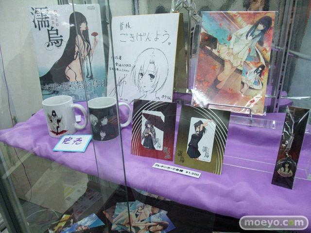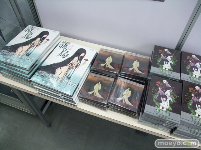 イラスト展の展示イラストが収録された画集「濡烏」(AA)等、一般販売グッスもおかれています
