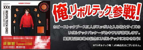ホビーストックブースに人がスッポリと入る特大サイズのリボルテックパッケージカキワリが登場します。