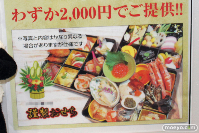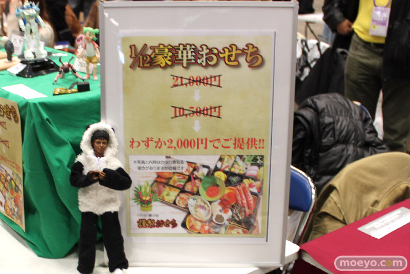 新年に話題となった謹製おせち騒動から約一ヶ月。ワンフェス2011冬の一般ブースでは、まさかの「1/12 豪華おせち」なるモノが販売!イメージ写真が印刷されたPOPによると「写真と内容はかなり異なる場合がありますが仕様です」との事です。