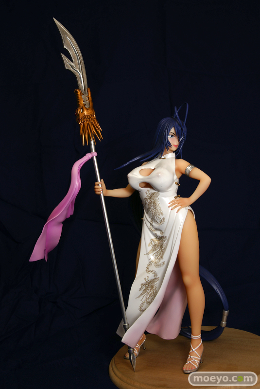 一騎当千XXより、関羽雲長を1/4.5サイズの大型で立体化しました。本体に透明ポリレジンを使用し、素肌の透明感は非常に高いです。造形はHEMMP氏なので、圧巻の肉感、驚異の胸囲を実現しました。腰回りの表現などは、とても妖艶に仕上がっております。