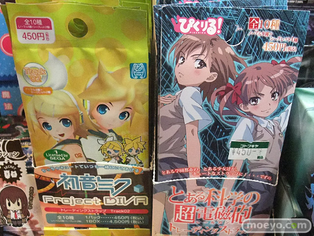 ホビーストック「初音ミク-Project DIVA- トレーディングストラップ Track02」と「ぴくりる! とある科学の超電磁砲 トレーディングストラップ」が、21日にアキバで発売開始されました。「ぴくりる! とある科学の超電磁砲」のほうは紙製パッケージに。