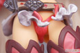 ●Mモードは攻撃を受けて悶絶する顔と、破れ散る衣装を用意 ダメージスカート越しにちらりと見える葉っぱパンツが、セクシーさを強調