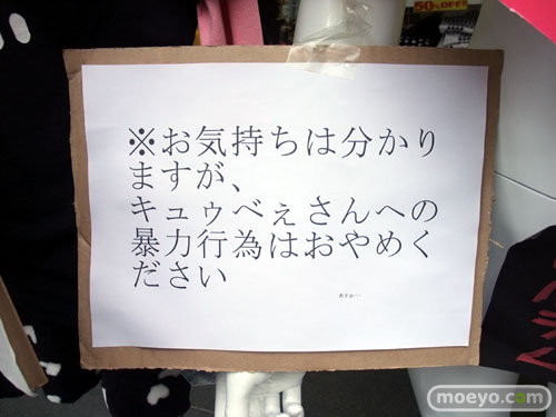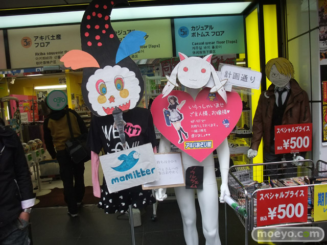 ジーンズメイト アキバあそび館の店頭で展示中の魔法少女まどか☆マギカのキュゥべえ&シャルロッテですが、「計画通り」と「お気持ちは分かりますが、キュゥべえさんへの暴力行為はおやめください」のPOPが追加されていました。
