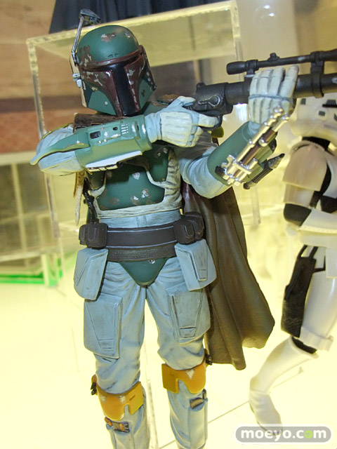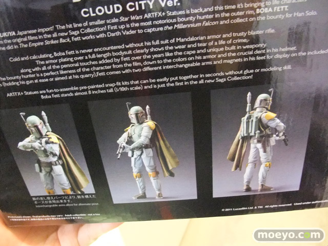 ARTFXのサイズ、価格をダウンサイジングしたARTFX+に第2弾、賞金稼ぎとしてその名を馳せるボバ・フェットが登場!腕部差し替えパーツが付属し、組み替えてライフルを構えたポーズ姿とライフルを下げた姿を再現可能。メタルプレート製ベースは足裏のマグネットで自由度の高いディスプレイが可能です。サイズは全高約185mm(1/10スケール)とコレクションに最適のサイズ。2011年2月発売予定「ストームトルーパービルドパック」と一緒に並べて映画の1シーンも再現出来ます。