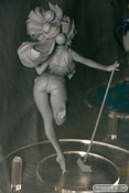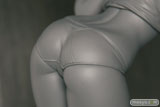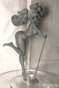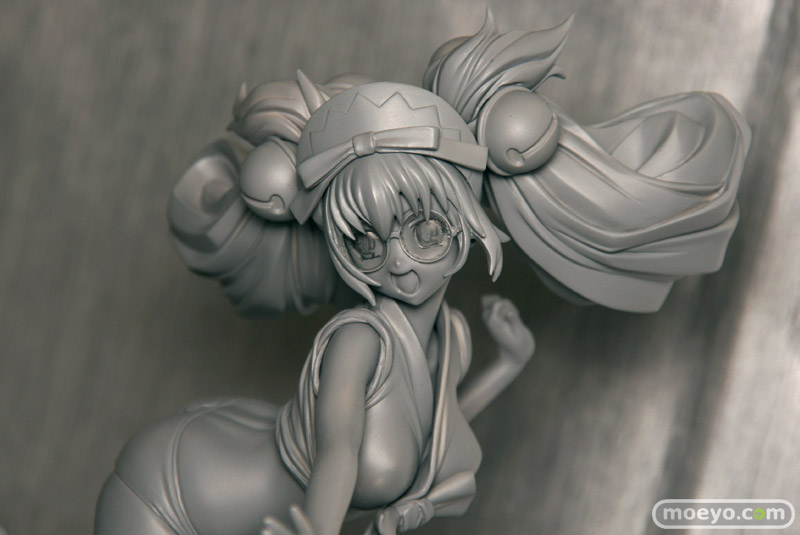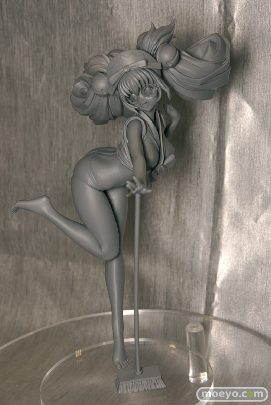 「2011冬ホビーメーカー合同商品展示会」の会場で、あみあみZERO「百花繚乱 サムライガールズ 直江兼続 お風呂掃除Ver.」の無彩色サンプルを展示。キュートでセクシーなお掃除姿を立体化したもので、ケツの造形にこだわりを感じます。