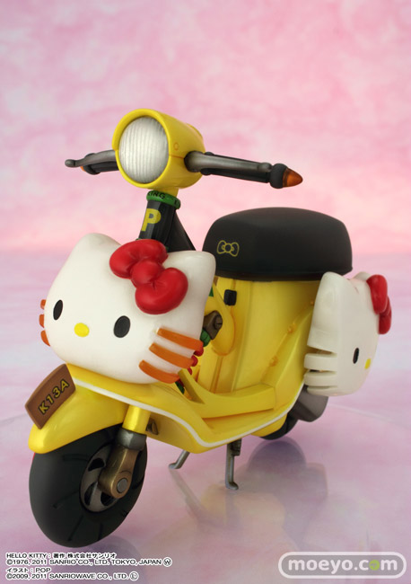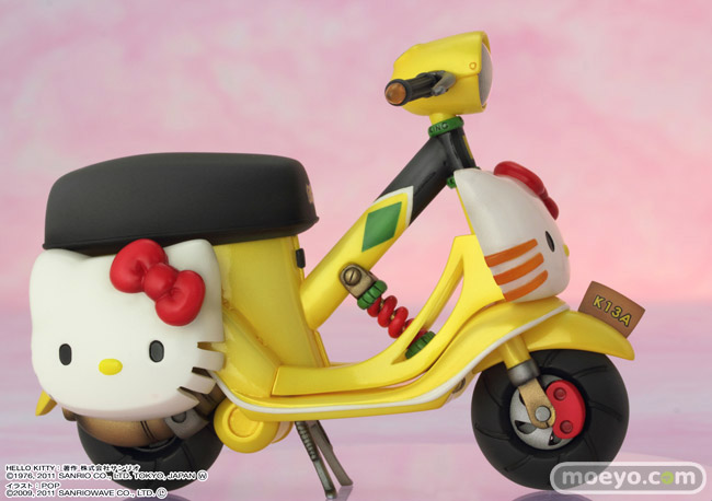 身につけるヘッドフォンや水着などキティちゃんをイメージした装飾品も可愛く立体化。イラストにも登場するスクーターバイクも完全再現しました。