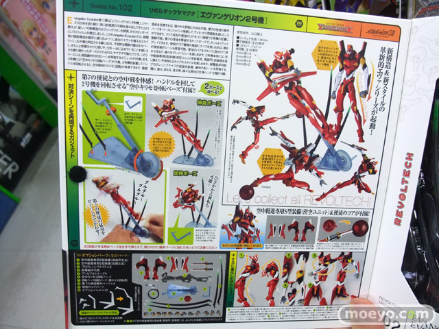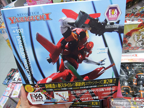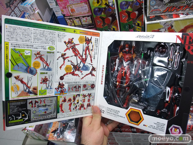 海洋堂「リボルテックヤマグチ No.102 Evangelion Evolution エヴァンゲリオン2号機」が、15日に一部ホビーショップに無事に入荷、発売されていました。劇中の「キリモミ回転」を体感出来る、空中キリモミ回転ベースが付属しています。