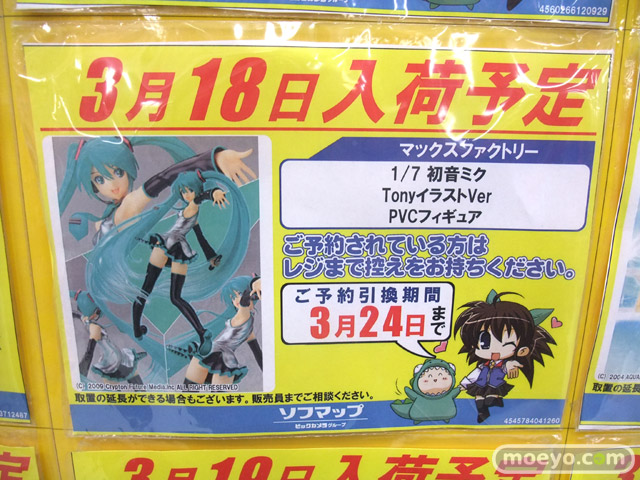 ソフマAM館の4Fで、3月のフィギュア系新作入荷予定表を公開中。ただし、地震の影響で、大半のものは、1週間程度ずれ込む可能性もあるとのことです。画像は3月18日にメーカー出荷されることが告知されたマックス「初音ミク Tony Ver.」。