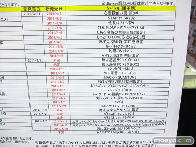 3月23日発売予定のBlu-ray/DVDは、震災の影響により、ほとんどが発売延期となり、22日にアキバで入荷確認できたのは「ヨスガノソラ 春日野穹」の春日野穹ぬいぐるみストラップ付Blu-ray版と、ソフトのみのDVD版の2種のみでした。