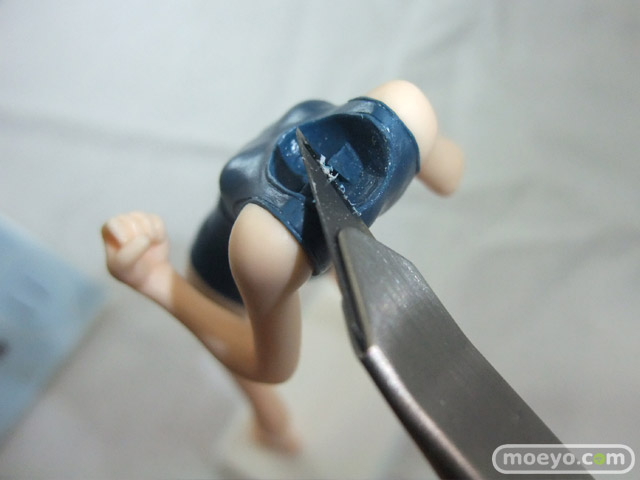 カラーレジンで塗装不要なので、初心者にも作りやすいガレキ「ダイすきット リペたん」を、もんぷち。が組み立てる過程を1日1枚の画像でお伝えしていきます!今日は胴部の襟部分のエッジのバリを、カッターでやさしく削り取ります。