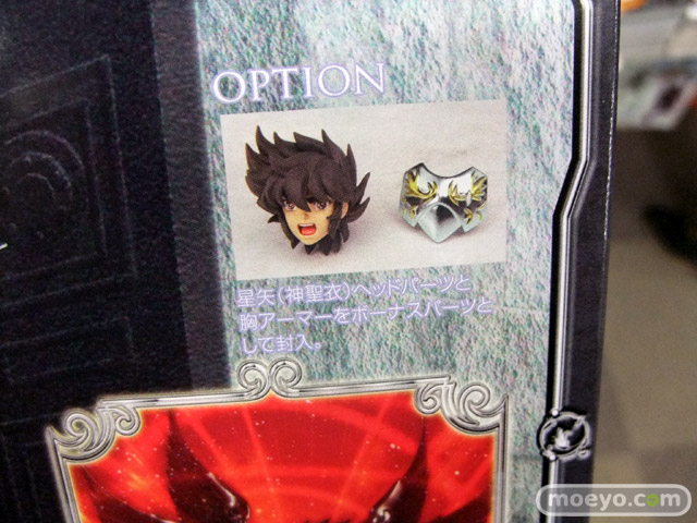 冥界を統べる神、冥王ハーデスが満を持して登場!ハーデスの棺をイメージした専用台座が付属し、ボーナスパーツとしてペガサス星矢(神聖衣)の頭部(叫び顔)及びハーデスの剣に貫かれ破損した胸アーマーが付属。