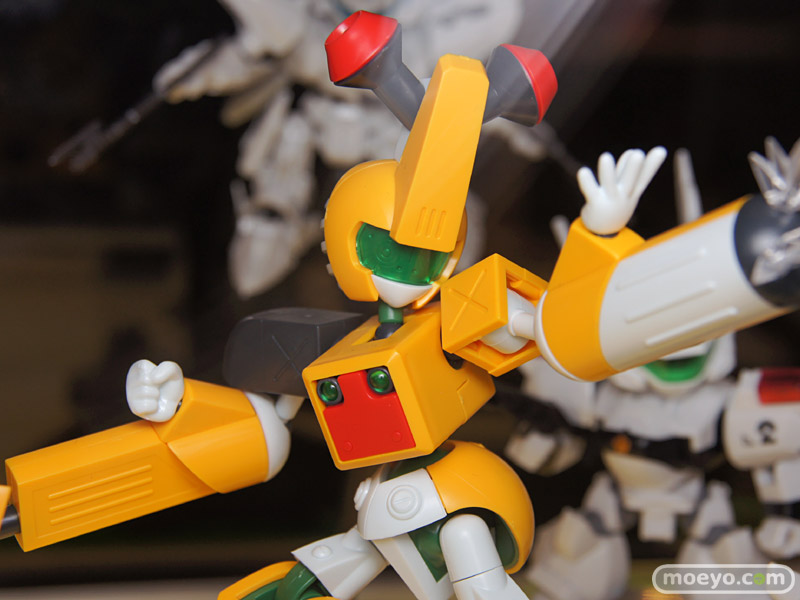 コトブキヤのマルチカラーキットプラスチックモデル「メダロットDS KBT10-M ガンノウズ」の素組みサンプルが、KOTOBUKIYAで展示中です。ボールジョイント採用の間接や、発射エフェクトパーツなどで、臨場感のあるディスプレイに。
