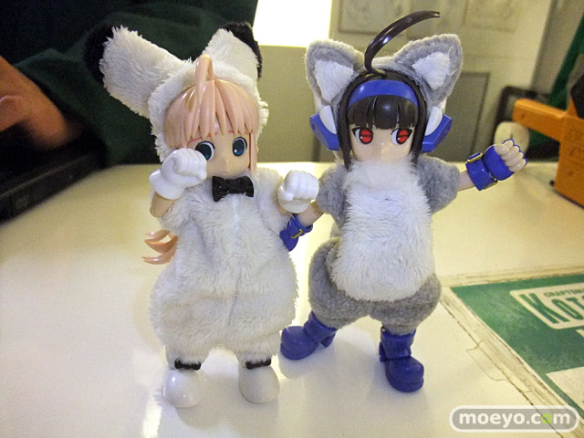 先日予約開始した、コトブキヤSHOP限定のホイホイさんとコンバットさんの、それぞれ専用に採寸した着ぐるみ「ホイホイ兎」「コンバット狐 -銀狐Ver.-」のサンプルがKOTOBUKIYAで展示開始。無類の可愛さを誇っていました。