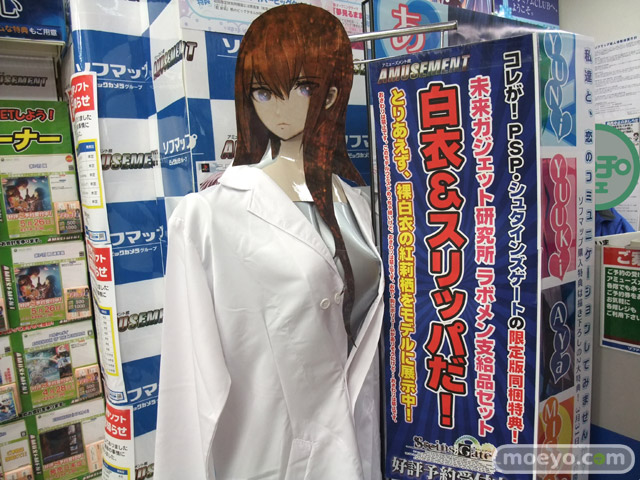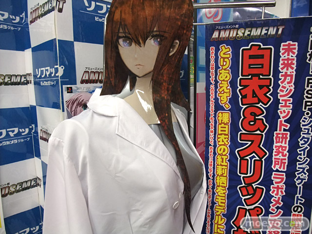 6月23日発売予定のPSP「シュタインズゲート(限定版)」に同梱される、白衣&スリッパのサンプルが、ソフマップAM館で「裸白衣の紅莉栖をモデル」にして展示中。ウエストめっちゃ細かったり胸にボリュームあったりしますが、おさわり厳禁。