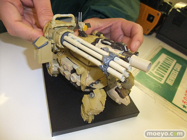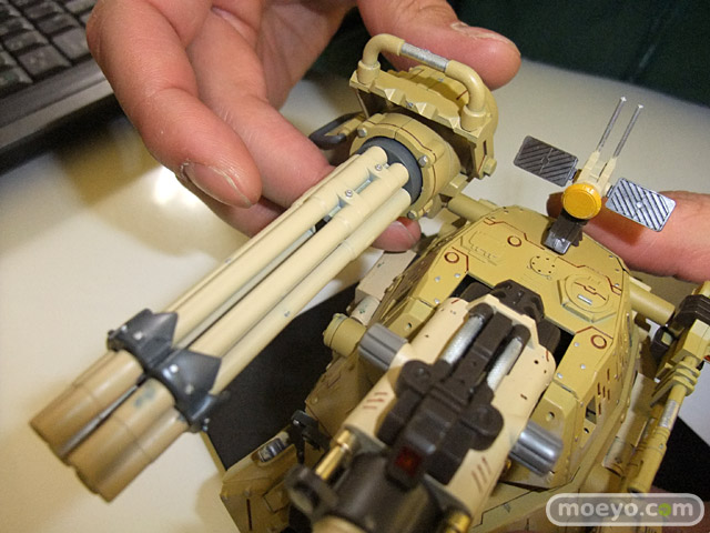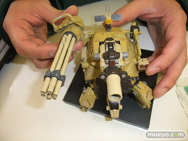 コトブキヤ「M.S.G ガトリングガン」が発売されています。今回、このガトリングガンを同じくコトブキヤ製の「ゾイド カノントータス」に装着した改造例を、コトブキヤのany氏に見せて頂きました。ぜんまいで動くガトリングの動作も、動画で確認できます。