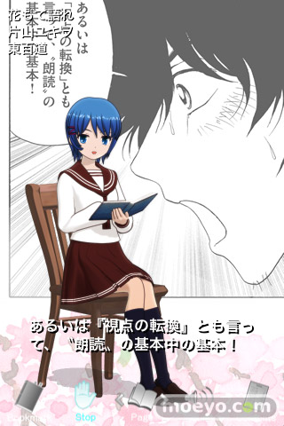 女子高生のキャラクター、乙葉しおり(cv:ささきのぞみ)が名作作品を朗読する人気のiPhoneアプリ「朗読少女」にて、小学館「月刊!スピリッツ」で連載中の人気漫画「花もて語れ」とのコラボ作品を配信開始しました。【朗読少女運営事務局】