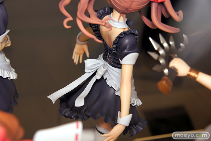 コトブキヤ「とある科学の超電磁砲 白井黒子 -とあるメイド姿の空間移動(テレポート)-」の彩色サンプルが、KOTOBUKIYAで展示中。同シリーズの御坂美琴とおそろいの、胸元が強調されたデザインのメイド服姿で立体化。パンツは黒。