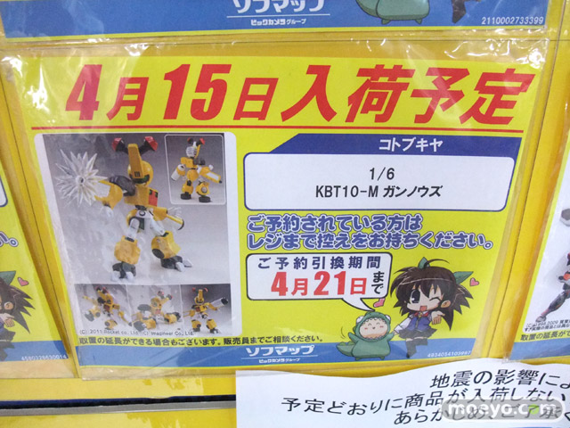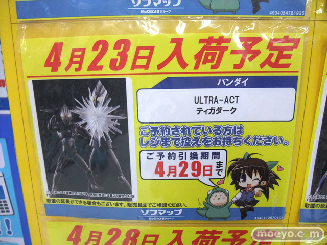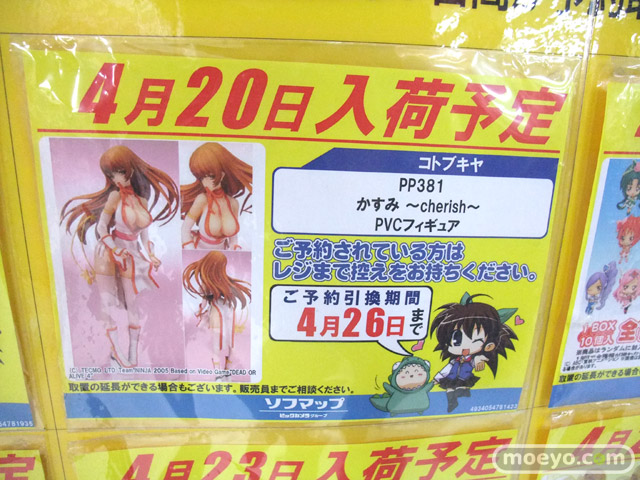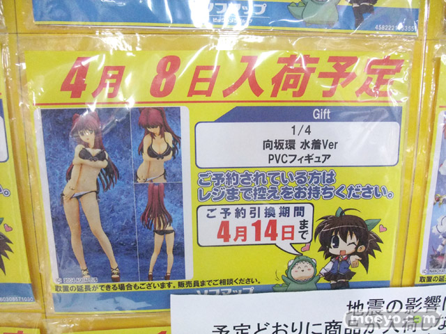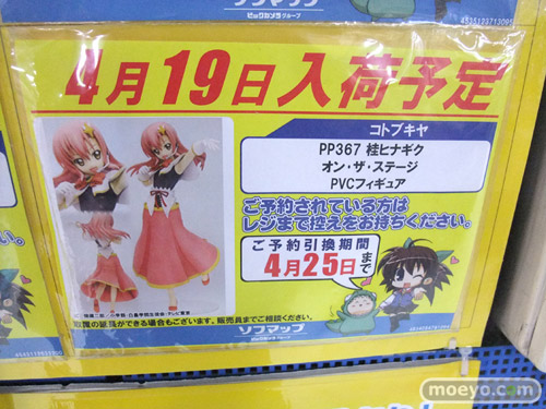 ソフマップアミューズメント館4Fのホビー商品入荷予定表が4月分に更新されていました。それによると、コトブキヤ「ハヤテのごとく!! 桂ヒナギク -オン・ザ・ステージ-」は4月19日入荷予定とのことです。他、掲示されていた入荷日をまとめました。