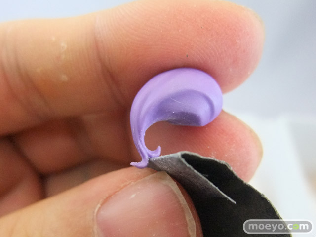 カラーレジンで塗装不要なので、初心者にも作りやすいガレキ「ダイすきット リペたん」を、もんぷち。が組み立てる過程を1日1枚の画像でお伝えしていきます!今日はツインテ先端のバリを削ります、折らないように慎重に・・・。