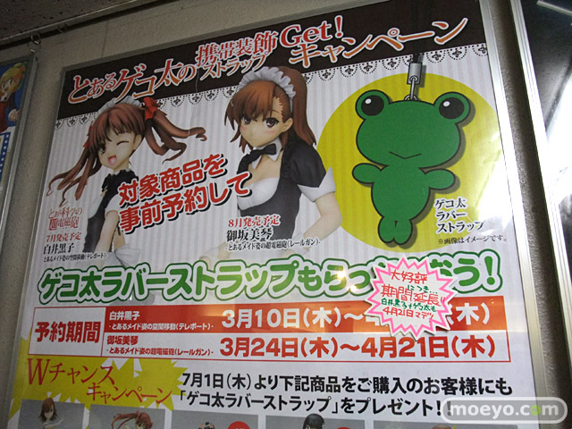 ぷちアキバ情報コトブキヤのゲコ太ストラップキャンペーンが、震災の影響など考慮し、黒子も21日まで期間延長。(KOTOBUKIYAでのサンプル展示の様子)