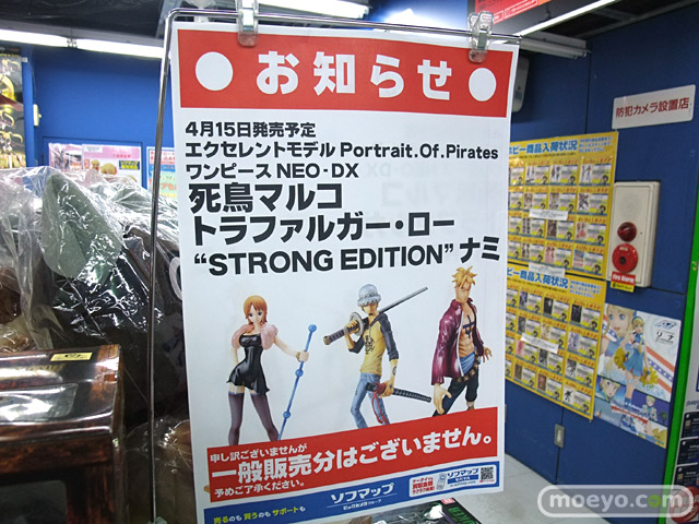 メガハウスのP.O.P「不死鳥マルコ」「トラファルガー・ロー」「”STRONG EDITION”ナミ再販」は、ホビーシティにナミが数個確認できたのみで、他2種は店頭在庫確認できず。