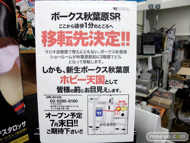 現在、ラジオ会館6、7Fに店を構える「ボークス秋葉原ショールーム」ですが、現店舗から徒歩1分のところへ、新生ボークス秋葉原 「ホビー天国」として移転先が決定したという告知が、4月16日に公開されました。オープン予定は7月末日予定。