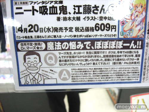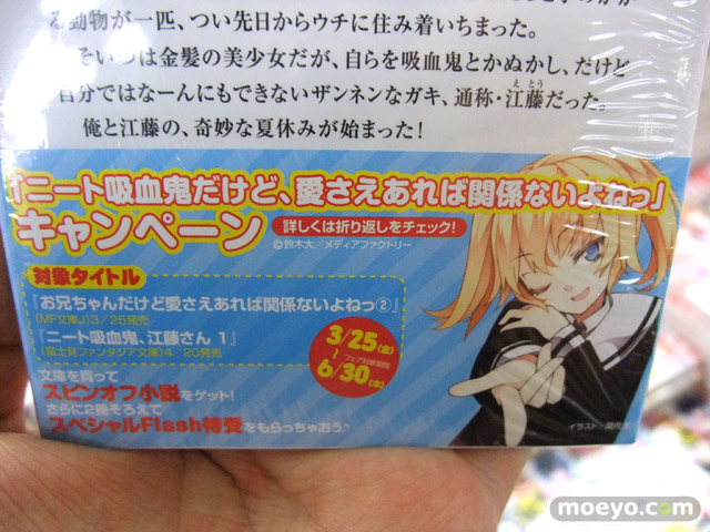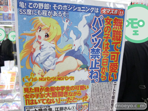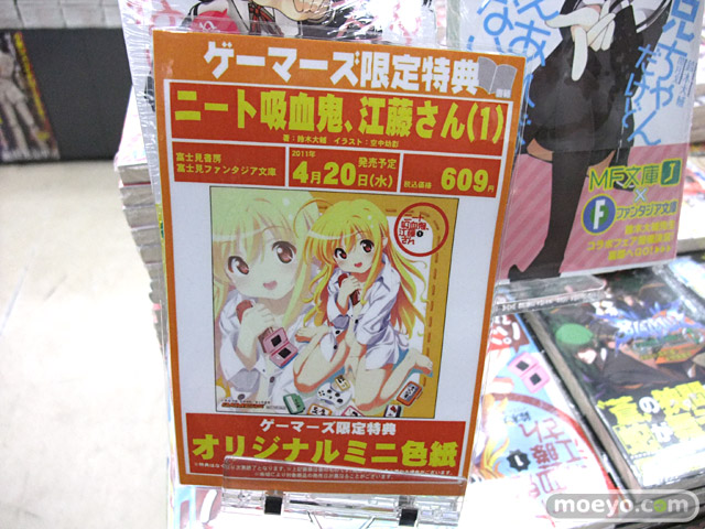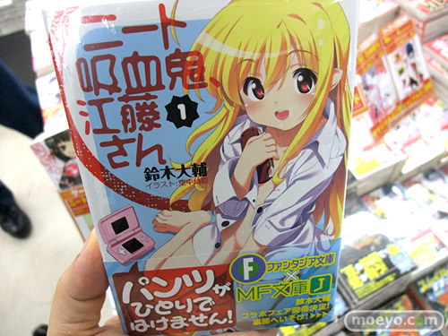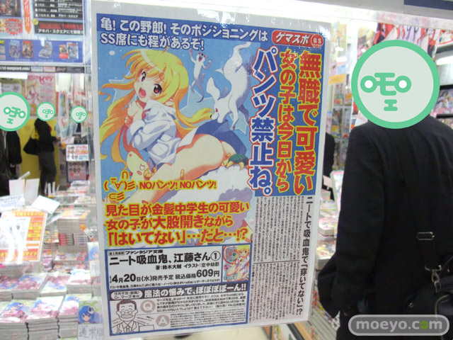 文庫「ニート吸血鬼、江藤さん 1巻」が、4月20日に発売。ゲーマーズでは「無職で可愛い女の子は今日からパンツ禁止ね。」として、空中幼彩氏イラストの「大股開きではいてない可愛い女の子」のイラスト大きく掲載した「ゲマスポ」を掲示。