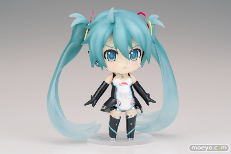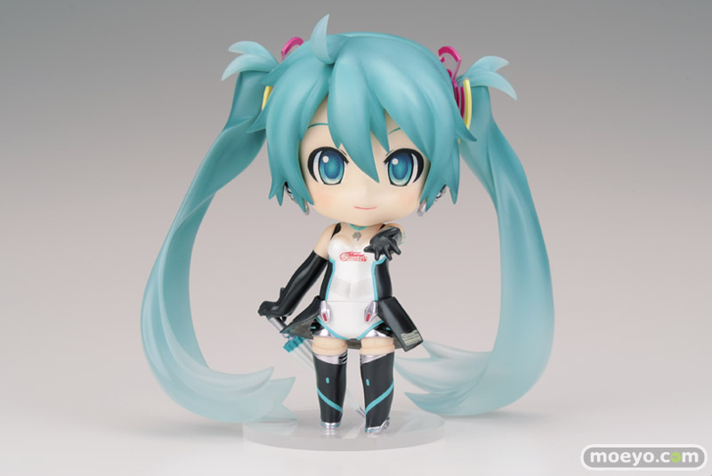 クリア素材を使用した透明感のあるツインテールや、レースクイーンとお揃いのコスチュームなど、村上ゆいちが描く原画を再現したモデルです。
