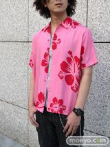 生地はツルツルとした肌触りと発色がよくプリントデザインが映える、アロハシャツの王道レーヨン100%!ボタンはココナッツ風の加工を施したウッドボタンを使用。襟はゆったりとしたシルエットのオープンカラー風となっており、カジュアルな着こなしがしやすくなっております。