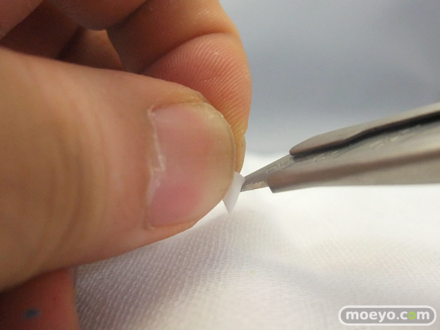 カラーレジンで塗装不要なので、初心者にも作りやすいガレキ「ダイすきット リペたん」を、もんぷち。が組み立てる過程を1日1枚の画像でお伝えしていきます!今日は襟の白いパーツをバリカット&ヤスリがけ。小さいパーツなのでなくさないよう・・・。