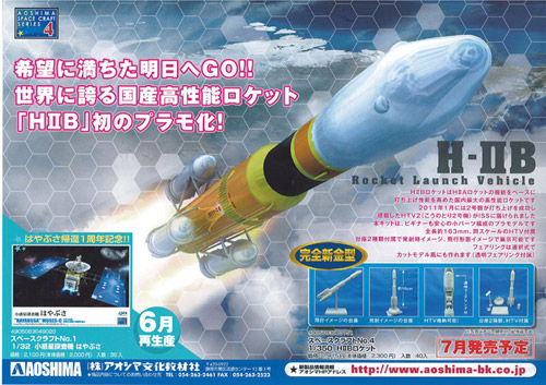 今年、国際宇宙ステーションに物資を運ぶ世界的ミッションを成し遂げた日本が誇る有名な高性能ロケット「HⅡB」をアオシマからプラモデル化させて頂きます。全長約163mm、同スケールのHTV(こうのとり)も付属。【アオシマ】