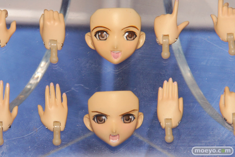 「トレジャーフェスタin有明5」の会場で、グリフォンエンタープライズ「フィぎゅっと! シャイニング・ウインド シーナ」のデコマスサンプルが展示。武器やハンドパーツ、表情パーツなども彩色サンプルが展示されていました。